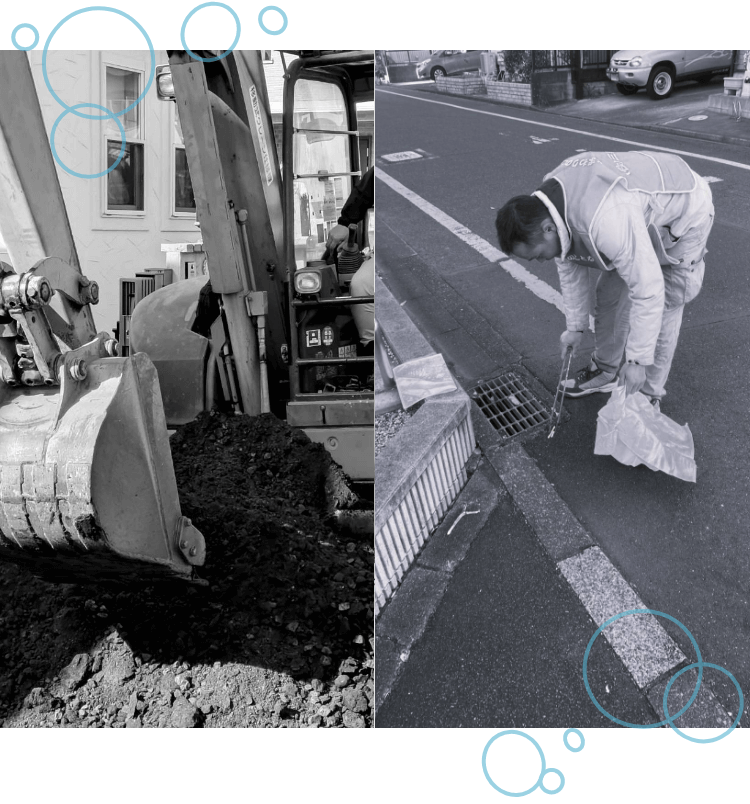 給排水工事、下水道工事、配管工事まで幅広く対応。